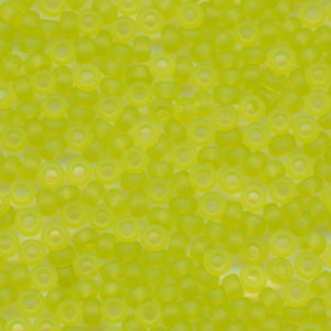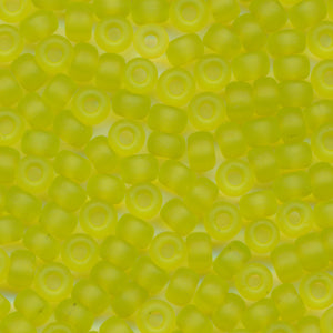 ミユキ社製のシードビーズで、無色透明(白スキ)又は有色透明なビーズ表面をスリガラスのようにツヤ消し加工(フロスト加工)した商品シリーズです。丸小(11/0サイズ)では20グラムで約2,200粒、糸に通すと約2.6メートル、丸大(8/0サイズ)では20グラムで約780粒、糸に通すと約1.5メートルほどの量のバラビーズです。