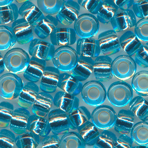 ミユキ社製のシードビーズで、ビーズの穴の部分に銀メッキ加工の施された(銀引)商品シリーズとなります。特小(15/0サイズ)では 20グラムで約5,000粒、糸に通すと約5メートル、丸小(11/0サイズ)では20グラムで約2,200粒、糸に通すと約2.6メートル、丸大(8/0サイズ)では20グラムで約780粒、糸に通すと約1.5メートル、特大(6/0サイズ)では20グラムで約240粒、糸に通すと約0.6メートルほどの量のバラビーズです。