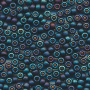 ミユキ社製のシードビーズで、スリガラスのようにツヤ消し加工(フロスト加工)したビーズ表面に含金ラスターを焼きつけた商品シリーズです。丸小(11/0サイズ)では20グラムで約2,200粒、糸に通すと約2.6メートル、丸大(8/0サイズ)では20グラムで約780粒、糸に通すと約1.5メートルほどの量のバラビーズです。