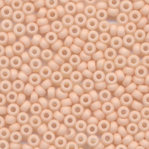 ミユキ社製のシードビーズで、スリガラスのようにツヤ消し加工(フロスト加工)したビーズ表面に含金ラスターを焼きつけた商品シリーズです。丸小(11/0サイズ)では20グラムで約2,200粒、糸に通すと約2.6メートル、丸大(8/0サイズ)では20グラムで約780粒、糸に通すと約1.5メートル、特大(6/0サイズ)では20グラムで約240粒、糸に通すと約0.6メートルほどの量のバラビーズです。