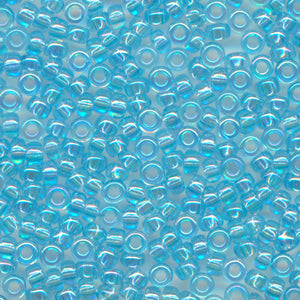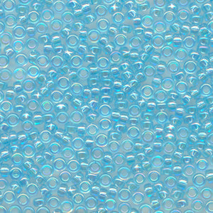 ミユキ社製のシードビーズで、表面に虹色の光彩(レインボー)をかけた商品シリーズとなります。特小(15/0サイズ)では 20グラムで約5,000粒、糸に通すと約5メートル、丸小(11/0サイズ)では20グラムで約2,200粒、糸に通すと約2.6メートルほどの量のバラビーズです。