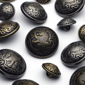 ドイツやイタリア、スペインなどのヨーロッパで製造された、品質とデザイン性に優れた金属製(合金にメッキ加工された)ボタンです。コートやジャケット、ブレザーなどにおススメです。※洗濯機を使用しての洗濯や乾燥は可能ですが、メタルボタンの色や風合いを保つため、強い洗剤および漂白剤は避けてください。