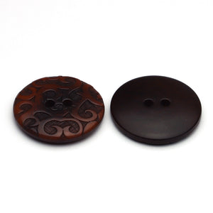 • 象牙椰子やベジタブルアイボリーとも呼ばれる「タグア椰子の実」の特色(天然素材ならではの温かみを感じる風合いと渦模様)を十分に生かし、南米パナマで美しく仕上げられた高級ナットボタンです。プラスチックボタンでは味わうことができない、長く使い込まれることによる経時変化もこのボタンの楽しさの一つです。※洗濯機を使用しての洗濯や乾燥は可能ですが、濡れた状態のままでの長時間放置は色移りの原因となりますので、水濡れ後はすぐに干してください。