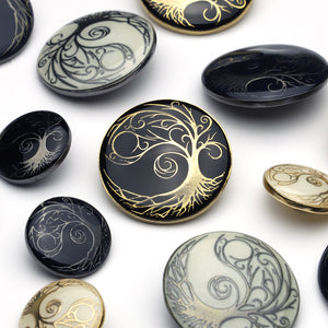 • イタリアの職人さんが1点1点手作りしている高級エナメルボタン(金属製ボタンにガラスの粒子をのせて焼成されたボタンの事で日本では七宝のボタン)で、上品な色合いと艶のある表情が特徴です。シンプルデザインの雑貨などにポイントとしてお使いいただきますと、商品全体に高級感を付け加えることができるオススメのボタンです。※イタリアンエナメルボタンは耐久性に優れていますが、洗濯の際には手洗いしてタオルドライしてください。