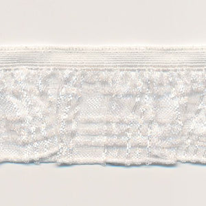SHINDO社製(S.I.C.)チェックフリルストレッチです。広巾で存在感のあるチェック柄のオーガンジーをフリル状に加工したレーシーな伸縮性テープです。カジュアルからエレガンス使いまで対応。バレエ着やランジェリー、その他カジュアル衣料や雑貨向けなどのご用途にオススメです。※メートルカット品は、実物確認用のサンプルまたはご試作用途向けに販売をいたしております(数量「3」でお求めいただくと、3メートルを1本でお届け)。巻でのご購入前に必ずメートルカット品にて実物をご確認ください。