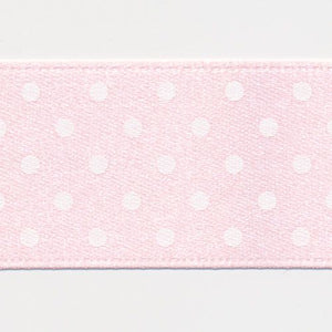ドットプリントリボン(両面サテン) #10 ペールピンク&ホワイト