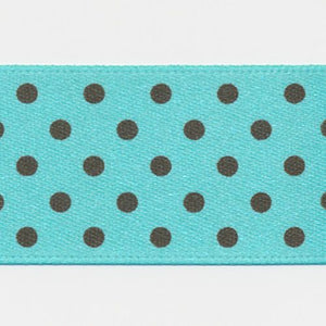 ドットプリントリボン(両面サテン) #25 ミント&ブラウン