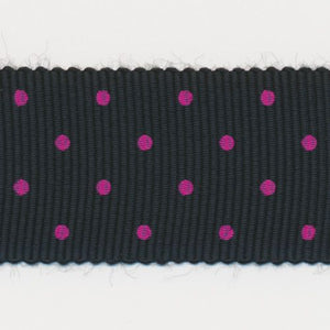 ドットプリントリボン(ペタシャム) #21 ブラック&ショッキングピンク
