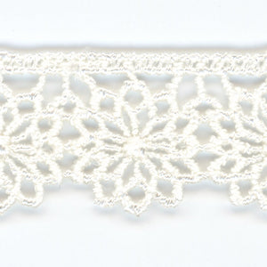 SHINDO社製(S.I.C.)ケミカルエンブロイダリーレースです。刺繍でありながら糸を編んだような透け感が特徴のフローラル柄レースです。カジュアル衣料やダンス衣装、子供服、インテリア雑貨などのご用途向けにオススメです。また、染色や洗濯時の収縮を最小限に抑えるために、生成りを含む全てのカラーに防縮加工が施されておりますので、生地に縫い付けたレースが洗濯したらすごく縮んでしまった...(T_T) といった惨事を回避できます。※メートルカット品は、実物確認用のサンプルまたはご試作用途向けに販売をいたしております(数量「3」でお求めいただくと、3メートルを1本でお届け)。巻でのご購入前に必ずメートルカット品にて実物をご確認ください。