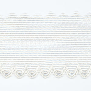 • SHINDO社製(S.I.C.)チュールエンブロイダリーレースです。編みレースと刺繍レースを組み合わせ、軽やかなチュールの編み目と細やかな刺繍とのハーモニーが美しい、片側スカラップのレースです。カジュアル衣料やダンス衣装、子供服、インテリア雑貨などのご用途向けにオススメです。また、染色や洗濯時の収縮を最小限に抑えるために、生成りを含む全てのカラーに防縮加工が施されておりますので、生地に縫い付けたレースが洗濯したらすごく縮んでしまった...(T_T) といった惨事を回避できます。※メートルカット品は、実物確認用のサンプルまたはご試作用途向けに販売をいたしております(数量「3」でお求めいただくと、3メートルを1本でお届け)。巻でのご購入前に必ずメートルカット品にて実物をご確認ください。