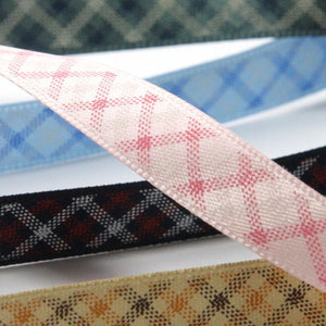 SHINDO社製(S.I.C.)チェックプリントリボン(両面サテン)です。両面サテンリボンの片面にチェック柄をプリント加工したリボンで、服飾やアクセサリー、ラッピングなどの幅広いご用途にオススメの商品です。※メートルカット品は、実物確認用のサンプルまたはご試作用途向けに販売をいたしております(数量「3」でお求めいただくと、3メートルを1本でお届け)。巻でのご購入前に必ずメートルカット品にて実物をご確認ください。