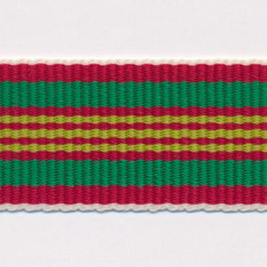 SHINDO社製(S.I.C.)ストライプグログランリボンです。太さの異なるライン巾にクラシカルなカラー配色した3色ストライプ柄が特徴のリボンで、子ども服やカジュアル衣料、帽子やバッグなどの雑貨用途向けにオススメです。※メートルカット品は、実物確認用のサンプルまたはご試作用途向けに販売をいたしております(数量「3」でお求めいただくと、3メートルを1本でお届け)。巻でのご購入前に必ずメートルカット品にて実物をご確認ください。