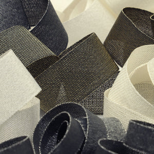 SHINDO社製(S.I.C.)メタリックリボンです。落ち着いたメタリックによる上品でアンティーク調なリボンで、キラキラと輝くラメ糸は荘厳で落ち着きのある雰囲気を演出しています。服飾だけでなくやアクセサリー用途やラッピングまで幅広いご用途にオススメの服飾資材です。※メートルカット品は、実物確認用のサンプルまたはご試作用途向けに販売をいたしております(数量「3」でお求めいただくと、3メートルを1本でお届け)。巻でのご購入前に必ずメートルカット品にて実物をご確認ください。
