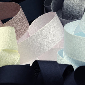 SHINDO社製(S.I.C.)梨地リボンです。柔らかく、梨の表面のようなザラザラとした質感と肌触りで、透け感が涼しげな薄手リボンす。※メートルカット品は、実物確認用のサンプルまたはご試作用途向けに販売をいたしております(数量「3」でお求めいただくと、3メートルを1本でお届け)。巻でのご購入前に必ずメートルカット品にて実物をご確認ください。