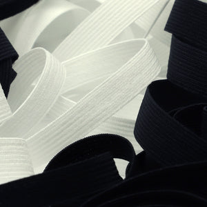 SHINDO社製(S.I.C.)コールゴム(フラット)です。柔らかなナイロン糸を使用した、肌当たりの優しい平ゴムです。インナーや体操帽子のあごゴム、その他ギャザー寄せのシャーリングゴムとしてオススメの資材です。※メートルカット品は、実物確認用のサンプルまたはご試作用途向けに販売をいたしております(数量「3」でお求めいただくと、3メートルを1本でお届け)。巻でのご購入前に必ずメートルカット品にて実物をご確認ください。