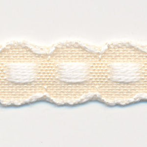 SHINDO社製(S.I.C.)チロルテープです。ボックスステッチが可愛らしく、またリボンの両端(上端と下端)に白いラインが入っているので、アクセントとして映えるリボンです。子供服や小物などの雑貨向けにオススメの服飾資材です。※メートルカット品は、実物確認用のサンプルまたはご試作用途向けに販売をいたしております(数量「3」でお求めいただくと、3メートルを1本でお届け)。巻でのご購入前に必ずメートルカット品にて実物をご確認ください。