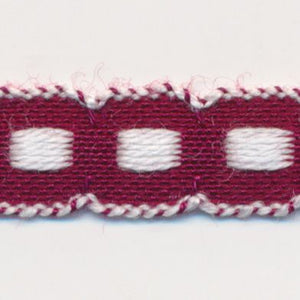 SHINDO社製(S.I.C.)チロルテープです。ボックスステッチが可愛らしく、またリボンの両端(上端と下端)に白いラインが入っているので、アクセントとして映えるリボンです。子供服や小物などの雑貨向けにオススメの服飾資材です。※メートルカット品は、実物確認用のサンプルまたはご試作用途向けに販売をいたしております(数量「3」でお求めいただくと、3メートルを1本でお届け)。巻でのご購入前に必ずメートルカット品にて実物をご確認ください。