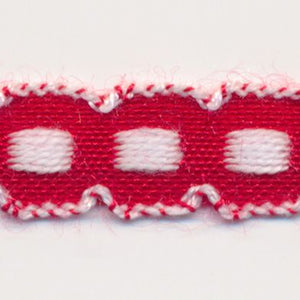 SHINDO社製(S.I.C.)チロルテープです。ボックスステッチが可愛らしく、またリボンの両端(上端と下端)に白いラインが入っているので、アクセントとして映えるリボンです。子供服や小物などの雑貨向けにオススメの服飾資材です。※メートルカット品は、実物確認用のサンプルまたはご試作用途向けに販売をいたしております(数量「3」でお求めいただくと、3メートルを1本でお届け)。巻でのご購入前に必ずメートルカット品にて実物をご確認ください。