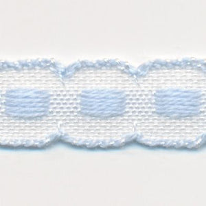 SHINDO社製(S.I.C.)チロルテープです。ボックスステッチが可愛らしく、またリボンの両端(上端と下端)に白いラインが入っているので、アクセントとして映えるリボンです。子供服や小物などの雑貨向けにオススメの服飾資材です。※メートルカット品は、実物確認用のサンプルまたはご試作用途向けに販売をいたしております(数量「3」でお求めいただくと、3メートルを1本でお届け)。巻でのご購入前に必ずメートルカット品にて実物をご確認ください。