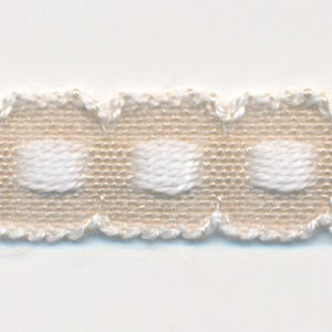 SHINDO社製(S.I.C.)チロルテープです。ボックスステッチが可愛らしく、またリボンの両端(上端と下端)に白いラインが入っているので、アクセントとして映えるリボンです。子供服や小物などの雑貨向けにオススメの服飾資材です。※メートルカット品は、実物確認用のサンプルまたはご試作用途向けに販売をいたしております(数量「3」でお求めいただくと、3メートルを1本でお届け)。巻でのご購入前に必ずメートルカット品にて実物をご確認ください。