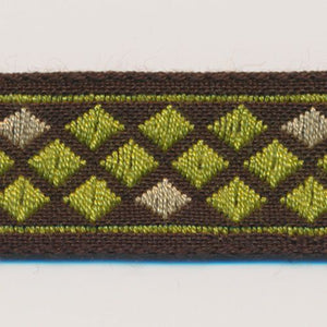SHINDO社製(S.I.C.)チロルテープです。ダイヤ柄のジャガードリボンで、子供服や小物などの雑貨向けにオススメの服飾資材です。※メートルカット品は、実物確認用のサンプルまたはご試作用途向けに販売をいたしております(数量「3」でお求めいただくと、3メートルを1本でお届け)。巻でのご購入前に必ずメートルカット品にて実物をご確認ください。