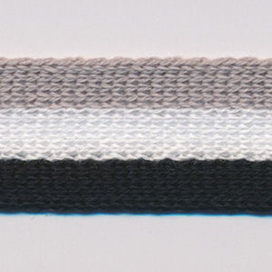 SHINDO社製(S.I.C.)コットンニットテープ(ストライプ)です。天然繊維の綿100%で作られた、フラッグカラーなどの3色または2色のストライプ柄のニットテープです。ニット組織ならではの伸びがあり、ストレッチ性の生地とのあわせなど、子供服やメンズカジュアル衣料へのご用途にオススメの商品です。※メートルカット品は、実物確認用のサンプルまたはご試作用途向けに販売をいたしております(数量「3」でお求めいただくと、3メートルを1本でお届け)。巻でのご購入前に必ずメートルカット品にて実物をご確認ください。