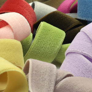 SHINDO社製(S.I.C.)ムースストレッチテープです。上品でなめらかな肌触りとニット組織ならではの毛の抜けにくさが特徴の片面伸縮性ベルベット調テープです。カジュアル衣料や雑貨向けのご用途にオススメです。9x9mmサイズはバインダー(テープ中央部に折れ目加工が施されており、袖や裾部分などの布端を容易に挟み込み、縁取りテープとして簡単&綺麗に縫い付けられるテープ)タイプです。※メートルカット品は、実物確認用のサンプルまたはご試作用途向けに販売をいたしております(数量「3」でお求めいただくと、3メートルを1本でお届け)。巻でのご購入前に必ずメートルカット品にて実物をご確認ください。