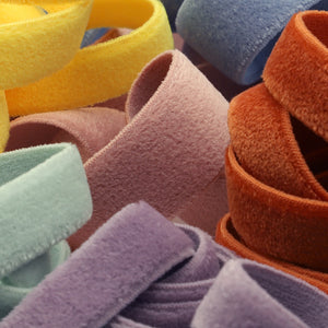 • SHINDO社製(S.I.C.)ムースストレッチテープです。上品でなめらかな肌触りとニット組織ならではの毛の抜けにくさが特徴の片面伸縮性ベルベット調テープです。カジュアル衣料や雑貨向けのご用途にオススメです。9x9mmサイズはバインダー(テープ中央部に折れ目加工が施されており、袖や裾部分などの布端を容易に挟み込み、縁取りテープとして簡単&綺麗に縫い付けられるテープ)タイプです。※メートルカット品は、実物確認用のサンプルまたはご試作用途向けに販売をいたしております(数量「3」でお求めいただくと、3メートルを1本でお届け)。巻でのご購入前に必ずメートルカット品にて実物をご確認ください。