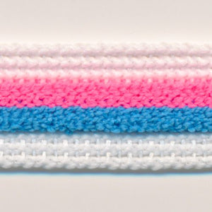 SHINDO社製(S.I.C.)ストライプパイルテープです。中央の2色が凸になっており、立体感のあるパイルニットテープで、柔らかで肌当たりが優しく、カジュアル衣料や雑貨向けのご用途にオススメの副資材です。※メートルカット品は、実物確認用のサンプルまたはご試作用途向けに販売をいたしております(数量「3」でお求めいただくと、3メートルを1本でお届け)。巻でのご購入前に必ずメートルカット品にて実物をご確認ください。