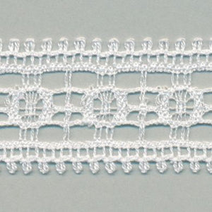 • SHINDO社製(S.I.C.)リバートリミングレースです。緻密で細やかなスクエアデザインが特徴で、リバーレース織機は使用する糸数も多く、構造が複雑なため生産するには高い技術力が必要とされる技法の希少性の高いレースです。レディース衣料やダンス衣装、インテリアなどの雑貨向けのご用途にオススメです。また、染色や洗濯時の収縮を最小限に抑えるために、生成りを含む全てのカラーに防縮加工が施されておりますので、生地に縫い付けたレースが洗濯したらすごく縮んでしまった...(T_T) といった惨事を回避できます。※メートルカット品は、実物確認用のサンプルまたはご試作用途向けに販売をいたしております(数量「3」でお求めいただくと、3メートルを1本でお届け)。巻でのご購入前に必ずメートルカット品にて実物をご確認ください。