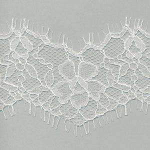 SHINDO社製(S.I.C.)リバートリミングレースです。緻密で細やかなフローラル柄とジグザグけ形状が特徴で、リバーレース織機は使用する糸数も多く、構造が複雑なため生産するには高い技術力が必要とされる技法の希少性の高いレースです。レディース衣料やダンス衣装、インテリアなどの雑貨向けのご用途にオススメです。また、染色や洗濯時の収縮を最小限に抑えるために、生成りを含む全てのカラーに防縮加工が施されておりますので、生地に縫い付けたレースが洗濯したらすごく縮んでしまった...(T_T) といった惨事を回避できます。※メートルカット品は、実物確認用のサンプルまたはご試作用途向けに販売をいたしております(数量「3」でお求めいただくと、3メートルを1本でお届け)。巻でのご購入前に必ずメートルカット品にて実物をご確認ください。