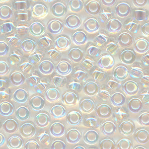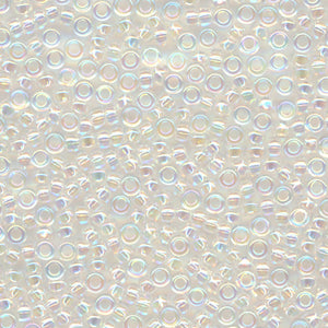 ミユキ社製のシードビーズで、表面に虹色の光彩(レインボー)をかけた商品シリーズとなります。特小(15/0サイズ)では 20グラムで約5,000粒、糸に通すと約5メートル、丸小(11/0サイズ)では20グラムで約2,200粒、糸に通すと約2.6メートル、丸大(8/0サイズ)では20グラムで約780粒、糸に通すと約1.5メートル、特大(6/0サイズ)では20グラムで約240粒、糸に通すと約0.6メートルほどの量のバラビーズです。