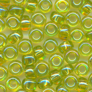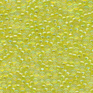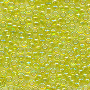 ミユキ社製のシードビーズで、表面に虹色の光彩(レインボー)をかけた商品シリーズとなります。特小(15/0サイズ)では 20グラムで約5,000粒、糸に通すと約5メートル、丸小(11/0サイズ)では20グラムで約2,200粒、糸に通すと約2.6メートル、丸大(8/0サイズ)では20グラムで約780粒、糸に通すと約1.5メートル、特大(6/0サイズ)では20グラムで約240粒、糸に通すと約0.6メートルほどの量のバラビーズです。
