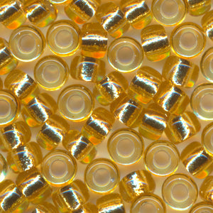 ミユキ社製のシードビーズで、ビーズの穴の部分に銀メッキ加工の施された(銀引)商品シリーズとなります。特小(15/0サイズ)では 20グラムで約5,000粒、糸に通すと約5メートル、丸小(11/0サイズ)では20グラムで約2,200粒、糸に通すと約2.6メートル、丸大(8/0サイズ)では20グラムで約780粒、糸に通すと約1.5メートル、特大(6/0サイズ)では20グラムで約240粒、糸に通すと約0.6メートルほどの量のバラビーズです。