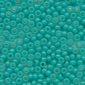 ミユキ社製のシードビーズで、白色不透明または有色不透明なギョク商品シリーズとなります。特小(15/0サイズ)では 20グラムで約5,000粒、糸に通すと約5メートル、丸小(11/0サイズ)では20グラムで約2,200粒、糸に通すと約2.6メートル、特大(6/0サイズ)では20グラムで約240粒、糸に通すと約0.6メートルほどの量のバラビーズです。