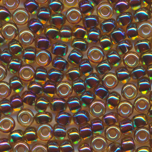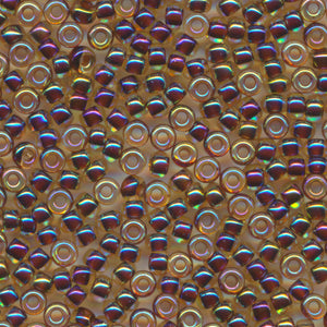 ミユキ社製のシードビーズで、ビーズの穴の部分に顔料、染料等で着色加工したビーズの表面に虹色の光彩(レインボー)をかけた商品シリーズとなります。丸小(11/0サイズ)では20グラムで約2,200粒、糸に通すと約2.6メートル、丸大(8/0サイズ)では20グラムで約780粒、糸に通すと約1.5メートルほどの量のバラビーズです。