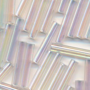 ミユキ社製の竹ビーズです。1分竹では 20グラムで約1,660粒、糸に通すと約4.9メートル、2分竹では20グラムで約760粒、糸に通すと約4.5メートル、4分竹では20グラムで約180粒、糸に通すと約2.1メートルほどの量のバラビーズです。