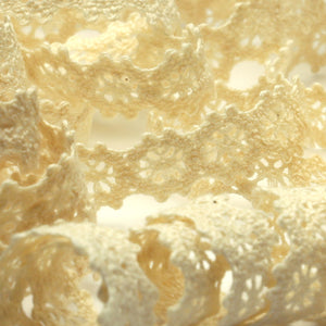 SHINDO社製(S.I.C.)オーガニックコットントーションレースです。2~3年以上有害な農薬・肥料を使用しない等、オーガニック農産物などの生産方法基準を満たした実践農地で、厳格な基準を守って育てられた綿花のみを使用したレース(C/#00は無染色)です。カジュアルや子供服、ベビー用品や雑貨向けのご用途におススメの資材です。※メートルカット品は、実物確認用のサンプルまたはご試作用途向けに販売をいたしております(数量「3」でお求めいただくと、3メートルを1本でお届け)。巻でのご購入前に必ずメートルカット品にて実物をご確認ください。