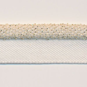 SHINDO社製(S.I.C.)メタリックストレッチパイピング(ゴールド)です。金色の極細ラメの「ラメ感」が強調されたパイピングテープで、柔らかく肌当たりの良い風合いも特徴の一つです。ラメ糸は比較的硬いため、通常のラメパイピングではカーブ分の縫製に難がありますが、こちらのテープは伸縮性がありますのでカーブにもついていき、縫製がしやすく、綺麗に仕上がります。カジュアル衣料や雑貨向けなどの布の裁ち目や合わせの装飾にオススメの資材です。※メートルカット品は、実物確認用のサンプルまたはご試作用途向けに販売をいたしております(数量「3」でお求めいただくと、3メートルを1本でお届け)。巻でのご購入前に必ずメートルカット品にて実物をご確認ください。
