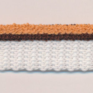 SHINDO社製(S.I.C.)ストライプパイルパイピングです。パイル糸を使用し、肌当たりの優しさと2色のストラプ柄が特徴のニットパイピングで、カーブにも対応する柔らかさがあり、縫製のしやすさオススメポイントの一つです。ジャケットやアウター、レディース製品など布の裁ち目や合わせの装飾に多くご採用いただいております。※メートルカット品は、実物確認用のサンプルまたはご試作用途向けに販売をいたしております(数量「3」でお求めいただくと、3メートルを1本でお届け)。巻でのご購入前に必ずメートルカット品にて実物をご確認ください。