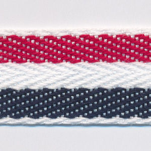 SHINDO社製(S.I.C.)コットンストライプ杉綾リボン(ストライプ)です。イタリアやフランス国旗などのフラッグカラーなど、3色または2色のストライプ柄が特徴のナチュラルテイストリボンで、子ども服やカジュアル衣料、帽子やバッグなどの雑貨用途向けにオススメです。※メートルカット品は、実物確認用のサンプルまたはご試作用途向けに販売をいたしております(数量「3」でお求めいただくと、3メートルを1本でお届け)。巻でのご購入前に必ずメートルカット品にて実物をご確認ください。