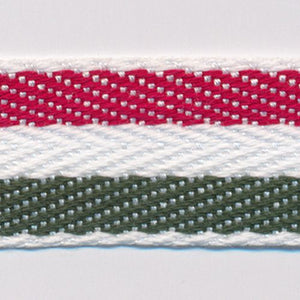 SHINDO社製(S.I.C.)コットンストライプ杉綾リボン(ストライプ)です。イタリアやフランス国旗などのフラッグカラーなど、3色または2色のストライプ柄が特徴のナチュラルテイストリボンで、子ども服やカジュアル衣料、帽子やバッグなどの雑貨用途向けにオススメです。※メートルカット品は、実物確認用のサンプルまたはご試作用途向けに販売をいたしております(数量「3」でお求めいただくと、3メートルを1本でお届け)。巻でのご購入前に必ずメートルカット品にて実物をご確認ください。
