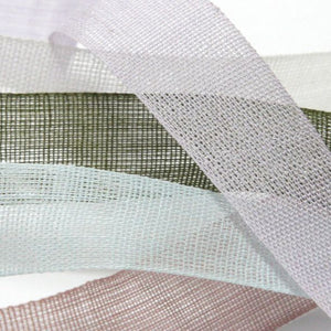 SHINDO社製(S.I.C.)のラミージョーゼットリボンです。繊細な組織の中にスラブやネップがアクセントになっている、ラミー素材(軽量で吸湿性があり、水分を含んでも早く蒸発させ丈夫で独特のシャリ感が特徴)のナチュラルリボンです。麻(リネンとラミー)素材のブラウスやワンピースへのアクセント、そしてウェストリボンに最適。また、コットン製品にもよく馴染み、アクセント使いのリボンとしてもオススメの服飾資材です。※メートルカット品は、実物確認用のサンプルまたはご試作用途向けに販売をいたしております(数量「3」でお求めいただくと、3メートルを1本でお届け)。巻でのご購入前に必ずメートルカット品にて実物をご確認ください。