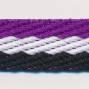 SHINDO社製(S.I.C.)ストライプツイルテープです。斜めの織り目とトリコロール柄などの3色、または2色のストライプ柄が特徴的な綾織りリボンで、一般的なリボンより若干ながら厚みがあり、柔らかな風合いがあるのもオススメオススメポイントです。パーカーなどのフードコードや、シャツの前立て、カットソーの衿伏せテープなどにもよくご使用いただいている資材です。※メートルカット品は、実物確認用のサンプルまたはご試作用途向けに販売をいたしております(数量「3」でお求めいただくと、3メートルを1本でお届け)。巻でのご購入前に必ずメートルカット品にて実物をご確認ください。