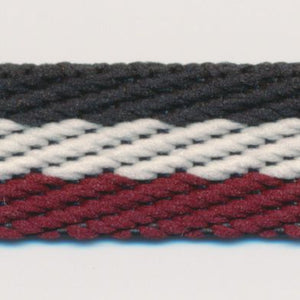 SHINDO社製(S.I.C.)ストライプツイルテープです。斜めの織り目とトリコロール柄などの3色、または2色のストライプ柄が特徴的な綾織りリボンで、一般的なリボンより若干ながら厚みがあり、柔らかな風合いがあるのもオススメオススメポイントです。パーカーなどのフードコードや、シャツの前立て、カットソーの衿伏せテープなどにもよくご使用いただいている資材です。※メートルカット品は、実物確認用のサンプルまたはご試作用途向けに販売をいたしております(数量「3」でお求めいただくと、3メートルを1本でお届け)。巻でのご購入前に必ずメートルカット品にて実物をご確認ください。