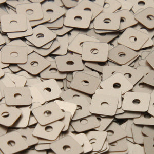 洗濯可能(ドライクリーニング石油系)なウォッシャブルタイプのスクエア型スパングルです(穴は中央)。サイズバリエーションが豊富ですので、同色のサイズグラデーションもできます。