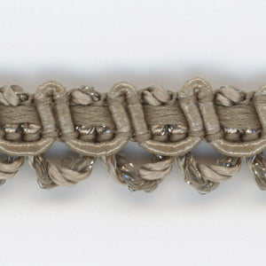 SHINDO社製(S.I.C.)アンティークメタリックトリミングブレードです。表情の異なる2種類の糸を使用し、アンティーク調の深みと落ち着きのあるラメブレードです。婦人服のジャケットなどアウターの縁取りに多く採用されております。また、カルトナージュやアクセサリーコードとして小物・雑貨向けに使用するのもオススメです。※メートルカット品は、実物確認用のサンプルまたはご試作用途向けに販売をいたしております(数量「3」でお求めいただくと、3メートルを1本でお届け)。巻でのご購入前に必ずメートルカット品にて実物をご確認ください。