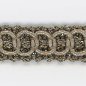 SHINDO社製(S.I.C.)アンティークメタリックトリミングブレードです。表情の異なる2種類の糸を使用し、アンティーク調の深みと落ち着きのあるラメブレードです。婦人服のジャケットなどアウターの縁取りに多く採用されております。また、カルトナージュやアクセサリーコードとして小物・雑貨向けに使用するのもオススメです。※メートルカット品は、実物確認用のサンプルまたはご試作用途向けに販売をいたしております(数量「3」でお求めいただくと、3メートルを1本でお届け)。巻でのご購入前に必ずメートルカット品にて実物をご確認ください。