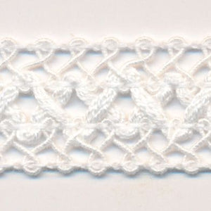 SHINDO社製(S.I.C.)コットンレースブレードです。天然繊維の綿100%で作られた、優しく温かみのある手編みレース調のブレードです。通常のレースよりも耐久性のある作りですので、子供向けの衣料品や縁飾りにも使いやすいのも特徴の一つです。シンプルなデザインながら華やかさもあり、インテリアや雑貨などのワンポイントアクセントにオススメです。※メートルカット品は、実物確認用のサンプルまたはご試作用途向けに販売をいたしております(数量「3」でお求めいただくと、3メートルを1本でお届け)。巻でのご購入前に必ずメートルカット品にて実物をご確認ください。