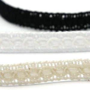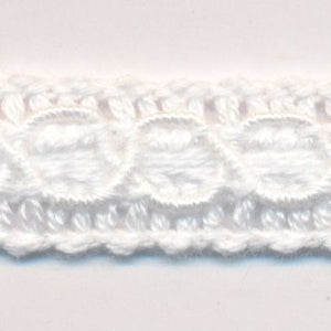 SHINDO社製(S.I.C.)コットンレースブレードです。天然繊維の綿100%で作られた、優しく温かみのある手編みレース調のブレードです。通常のレースよりも耐久性のある作りですので、子供向けの衣料品や縁飾りにも使いやすいのも特徴の一つです。シンプルなデザインながら華やかさもあり、インテリアや雑貨などのワンポイントアクセントにオススメです。※メートルカット品は、実物確認用のサンプルまたはご試作用途向けに販売をいたしております(数量「3」でお求めいただくと、3メートルを1本でお届け)。巻でのご購入前に必ずメートルカット品にて実物をご確認ください。